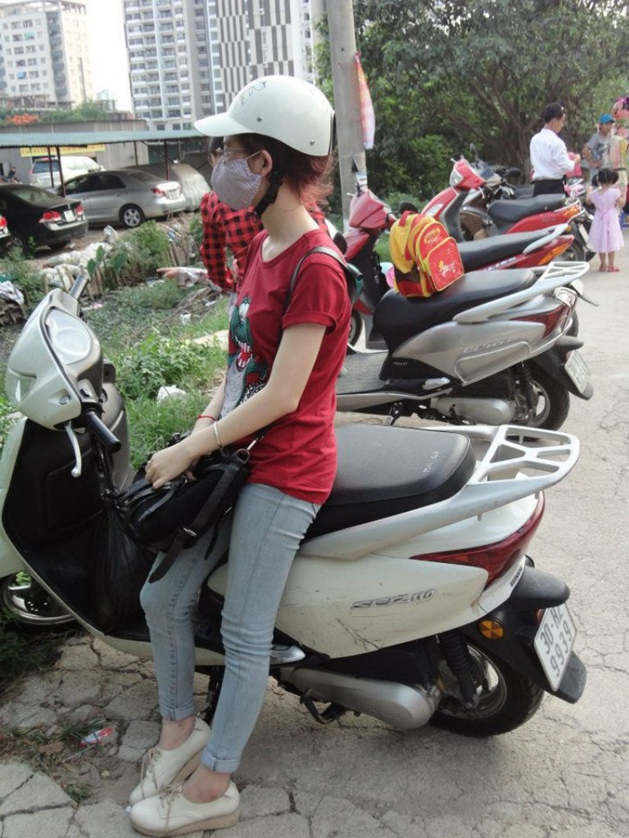 | Hàng loạt phụ huynh phải bỏ xe trước cổng trường để vào sân trường tránh nắng và đợi con. |