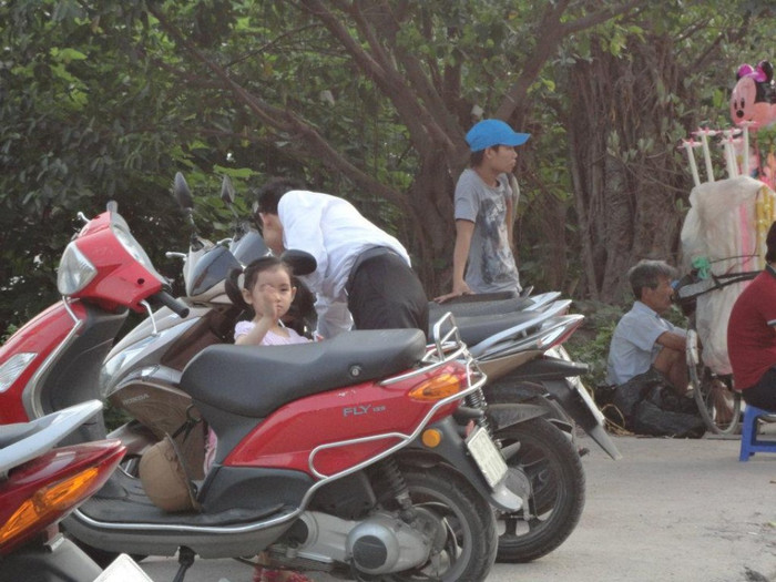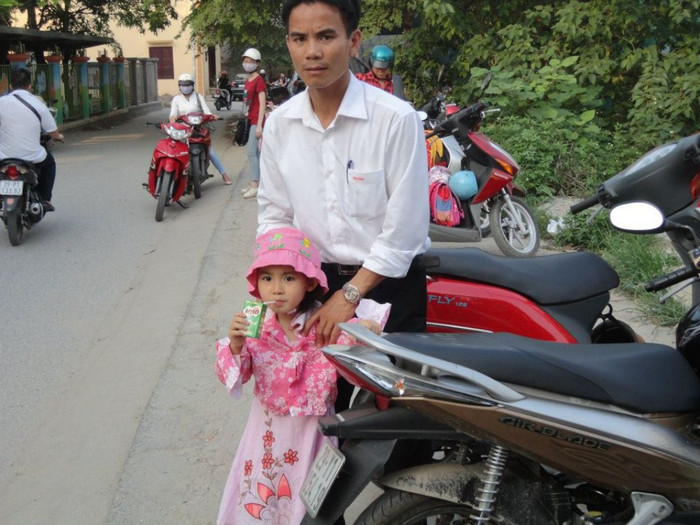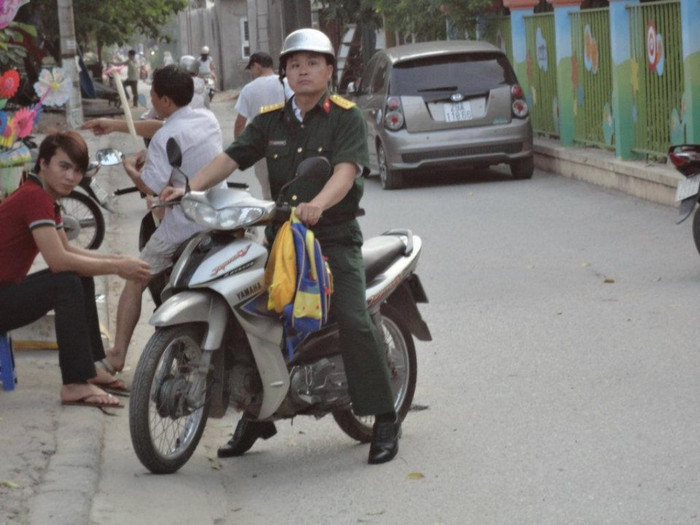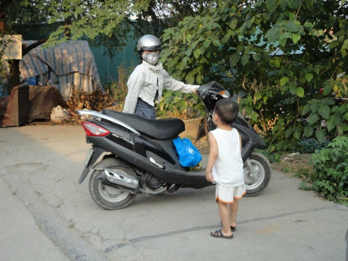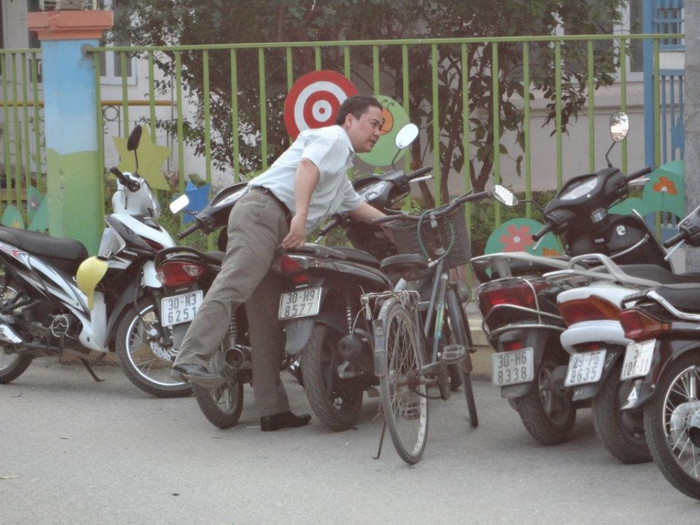 | Ông cố gắng dắt xe ra nhanh thật nhanh để đưa cháu về. |