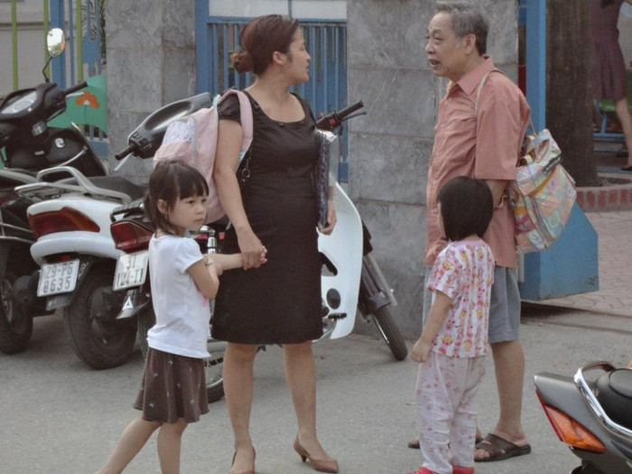 | Có một số phụ huynh chọn giải pháp ở lại chơi thêm với con ở trường, đợi trời mát mới về. |