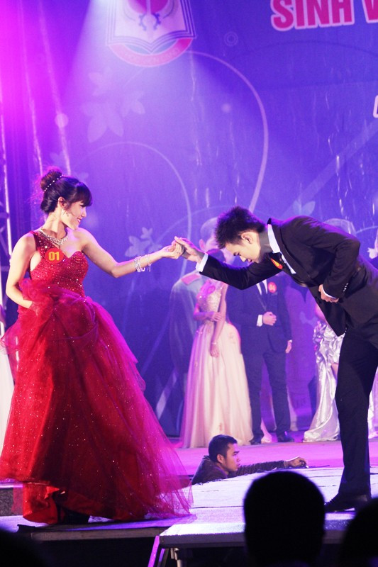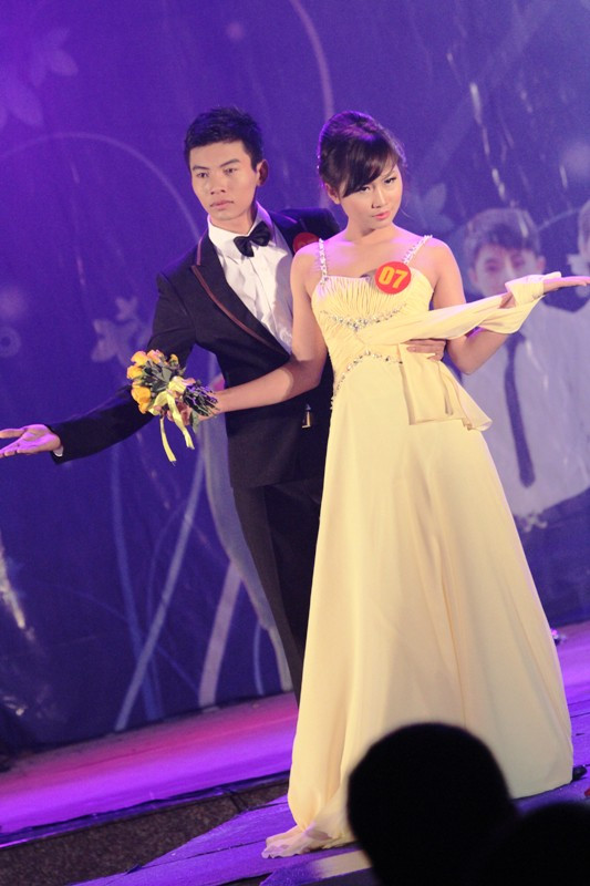 | Nguyễn Bình Giang – Nguyễn Ngọc Bích (01) trong phần thi trang phục dạ hội của mình. |