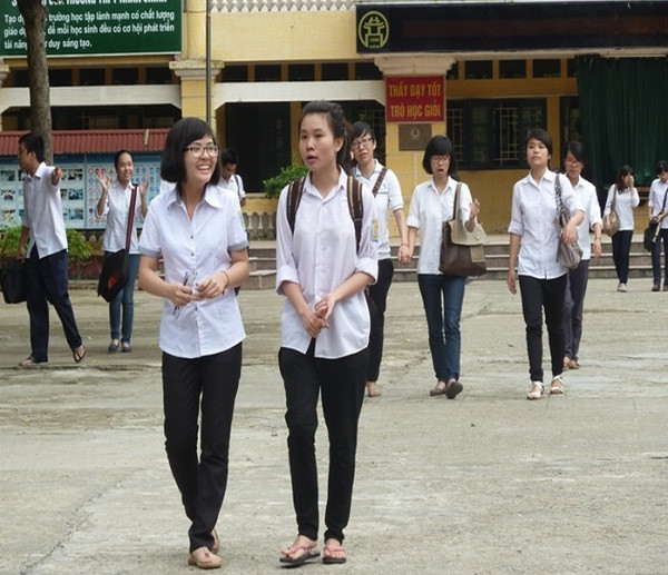| Các thí sinh tại Hội đồng thi THPT Nguyễn Bỉnh Khiêm ra khỏi phòng tới vẻ tươi tỉnh ở môn Toán. |