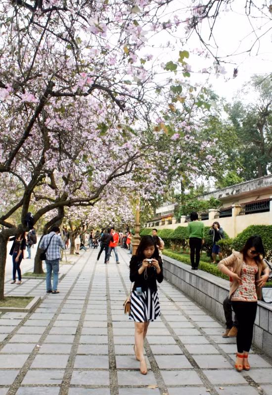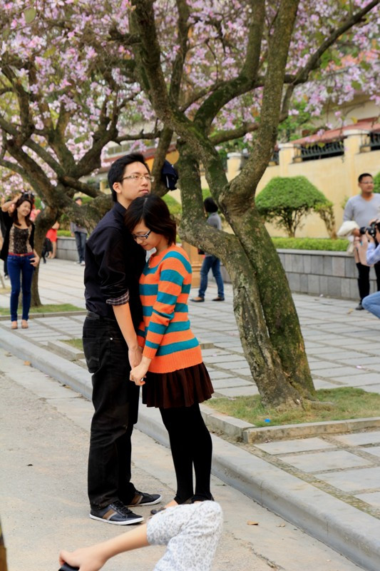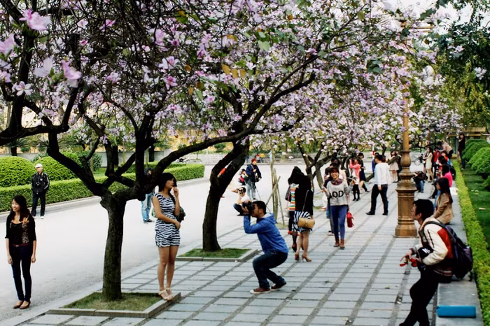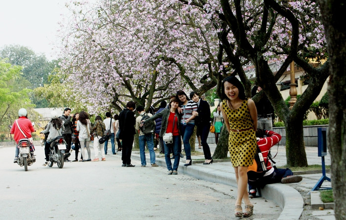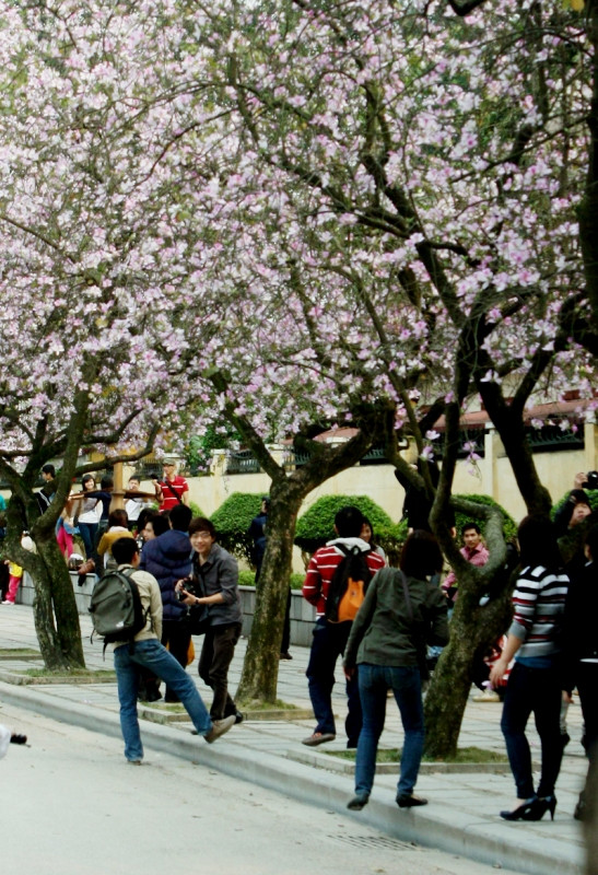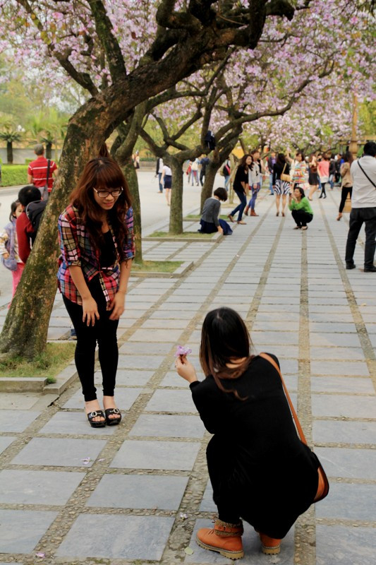 | Sắc đẹp của hoa Ban thu hút những tay máy trẻ nghiệp dư. |