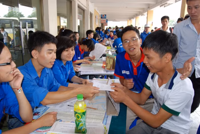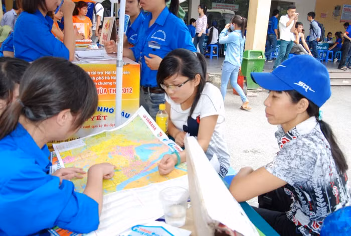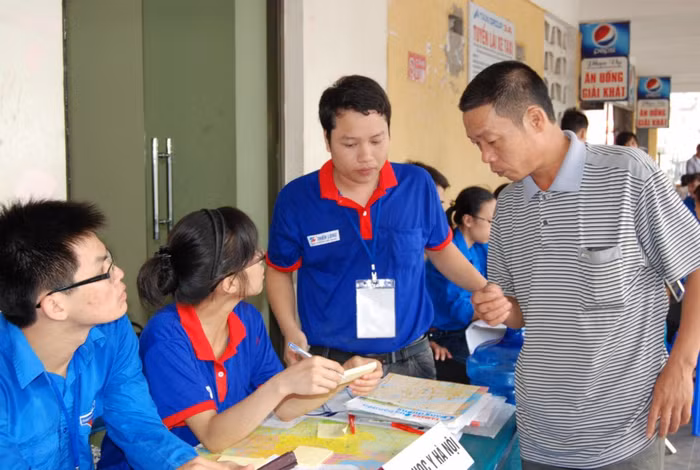 | Thanh niên tình nguyện bê vác đồ giúp gia đình thí sinh. Đối với họ được giúp đỡ mọi người là một niềm hạnh phúc. |