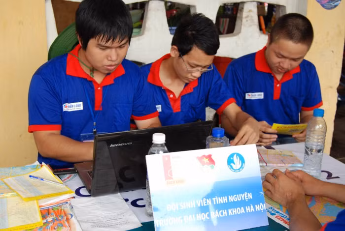 | Nụ cười luôn nở trên môi các sinh viên tình nguyện |