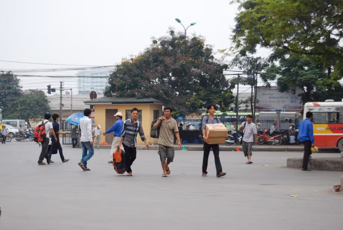 | Bến xe Giáp Bát chật ních người. |
