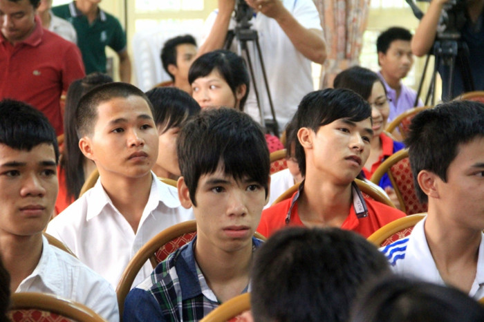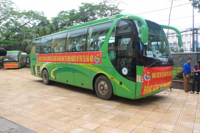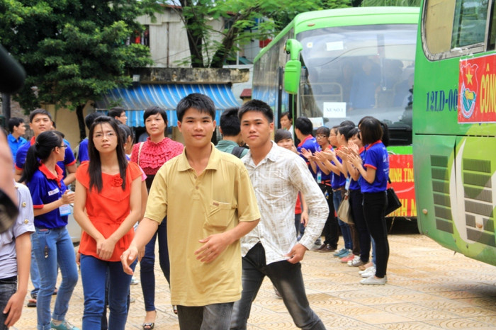 | Khoảng gần 12 giờ trưa đoàn xe chở 100 thí sinh hoàn cảnh khó khăn từ Lạng Sơn mới về tới Hà Nội. |