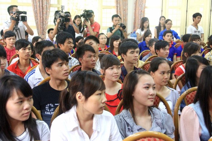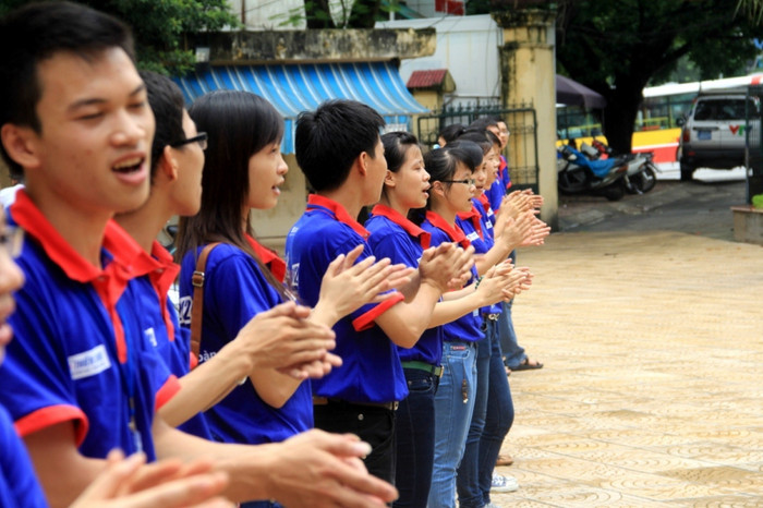 | Tình nguyện viên nghe phổ biến những quy định lưu ý để chăm sóc tốt cho các thí sinh về Hà Nội dự thi. Do buổi sáng nay khu vực Bắc Bộ có mưa nên đoàn xe chở 100 thí sinh từ Lạng Sơn về Hà Nội muộn hơn dự kiến. |