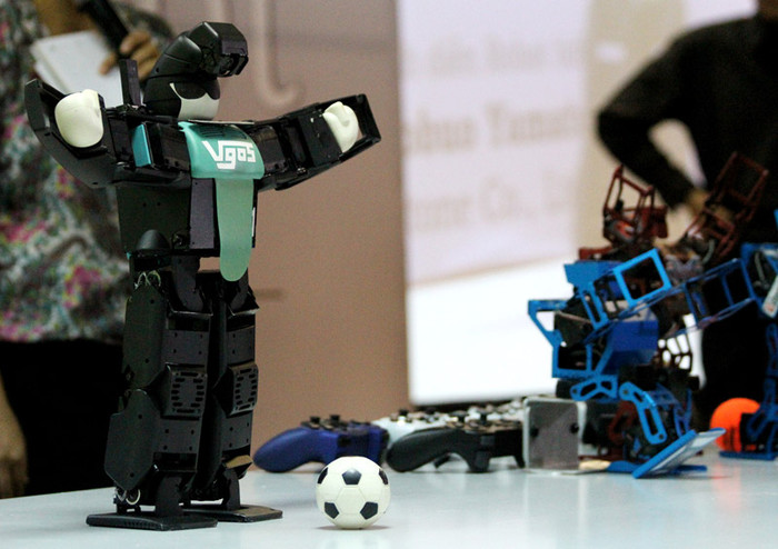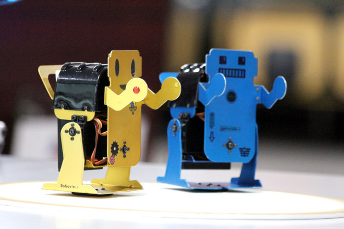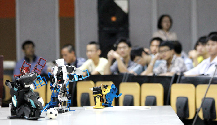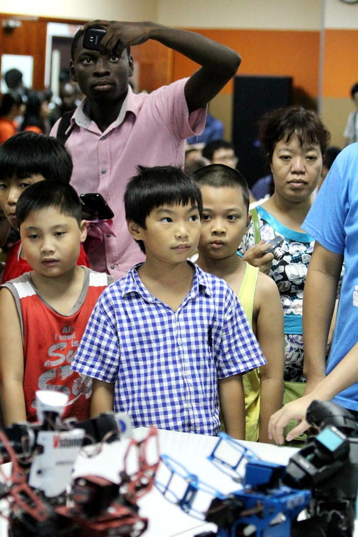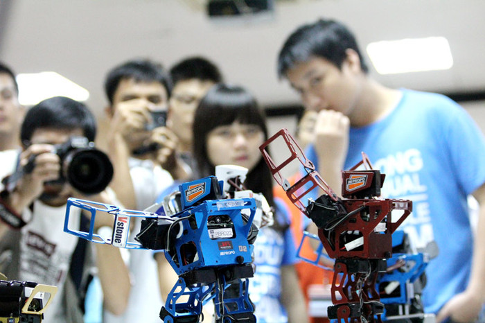| Các học sinh tại Hà Nội được chơi thử với Robot Sumo |
