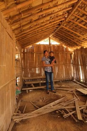 Lớp học là một căn chòi lá rộng độ bằng 4 chiếc chiếu đôi xiêu vẹo, vách tre vọc vạch, hở hoác. Bên trong bàn ghế gãy nát, đầy mạng nhện, ngổn ngang phân heo. Không biết đã từ bao giờ, trường học của lũ trẻ đã trở thành nơi trú ngụ cho một cặp heo mán với 4 heo con.