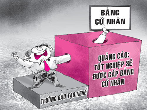 Ông Dương Đức Lân, Phó Tổng Cục trưởng - Tổng cục Dạy nghề - Bộ LĐ-TB-XH khẳng định: “Các trường đào tạo nghề chỉ được cấp bằng tốt nghiệp các bậc học nghề như trung cấp nghề, cao đẳng nghề chứ không phải là bằng cử nhân. Việc gọi tên bằng cao đẳng nghề là bằng cử nhân là sai hoàn toàn. Các trường cũng không được phép gọi bậc cao đẳng nghề là cao đẳng vì đây là 2 hệ thống giáo dục khác nhau. Việc gọi tên lập lờ như vậy để các trường dễ chiêu sinh”.