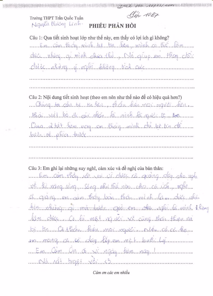 Tuy thời gian triển khai công việc trên chưa dài nhưng kết quả gặt hái ban đầu hết sức bất ngờ. Xin trích dẫn một vài cảm nhận của giáo viên và học sinh: