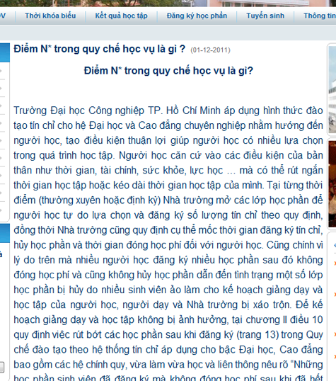 Việc phổ biến nội quy, quy định của Trường ĐH CN TP.HCM lại không thống nhất giữa các trường chính và trường cơ sở. Chính việc này làm cho sinh viên thêm phần bức xúc vì sự thiếu công bằng trong quản lí đào tạo. Do đó việc cần thiết là phải thực hiện một cách rõ ràng, trong đó thông báo trên website của trường là phương tiện hữu hiệu nhất.