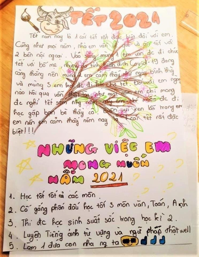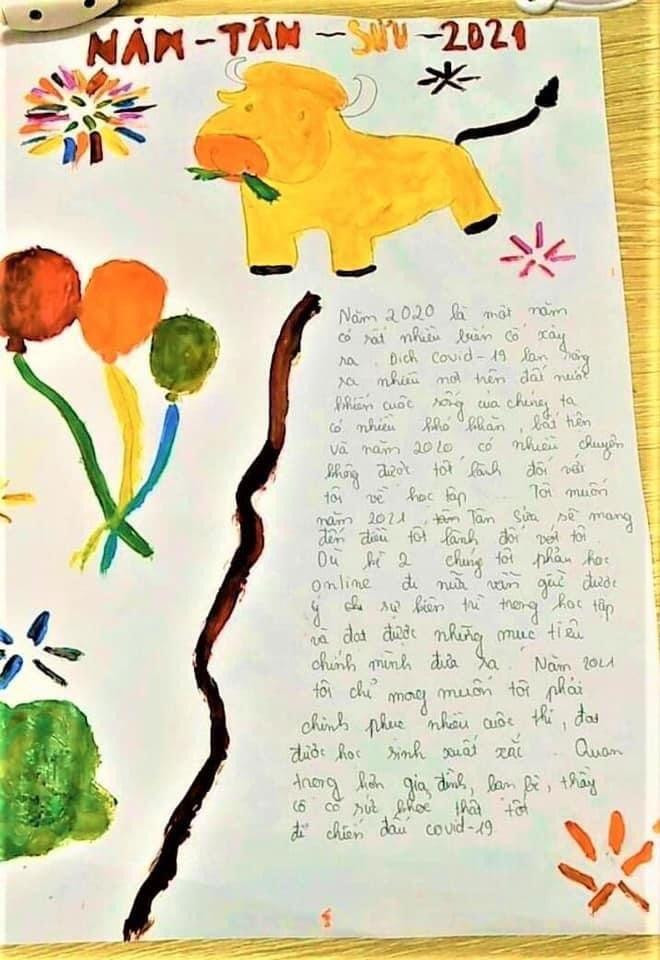 | Trước buổi học đầu tiên, các em học sinh cũng không quên gửi thông điệp khai bút qua hình thức online để thầy cô và bạn bè được biết (ảnh: NTCC) |