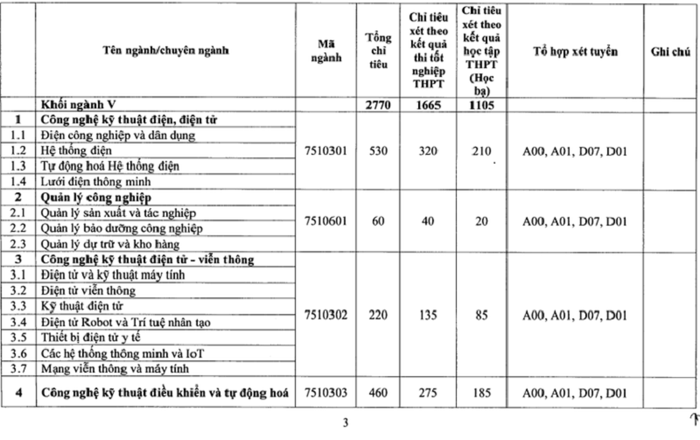 (Các tổ hợp xét tuyển có giá trị tương đương nhau)
