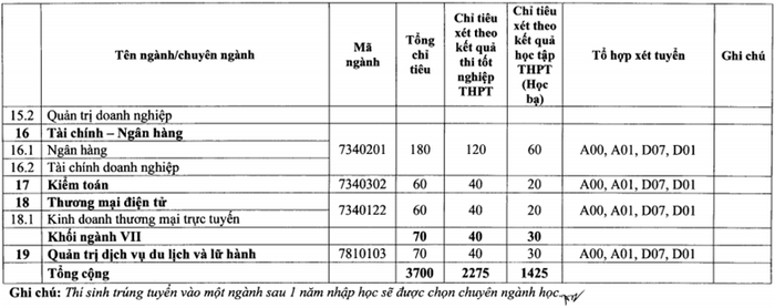 Căn cứ theo từng tổ hợp các môn xét tuyển (tại mục 2.1) và theo từng mã ngành tuyển sinh (có tính cả điểm ưu tiên).