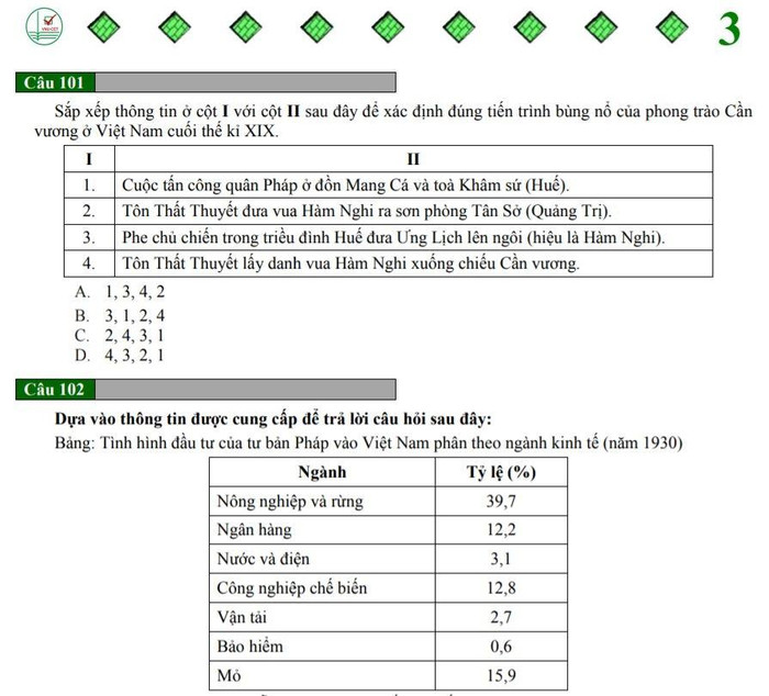 Xem toàn bộ đề thi tham khảo của Đại học Quốc gia Hà Nội, TẠI ĐÂY. Phiếu trả lời trắc nghiệm, TẠI ĐÂY.