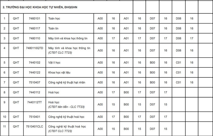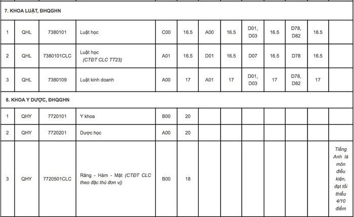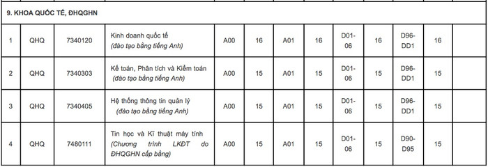 Và 3 khoa trực thuộc Đại học Quốc gia Hà Nội gồm: Khoa Luật, Khoa Dược, Khoa Quốc tế.