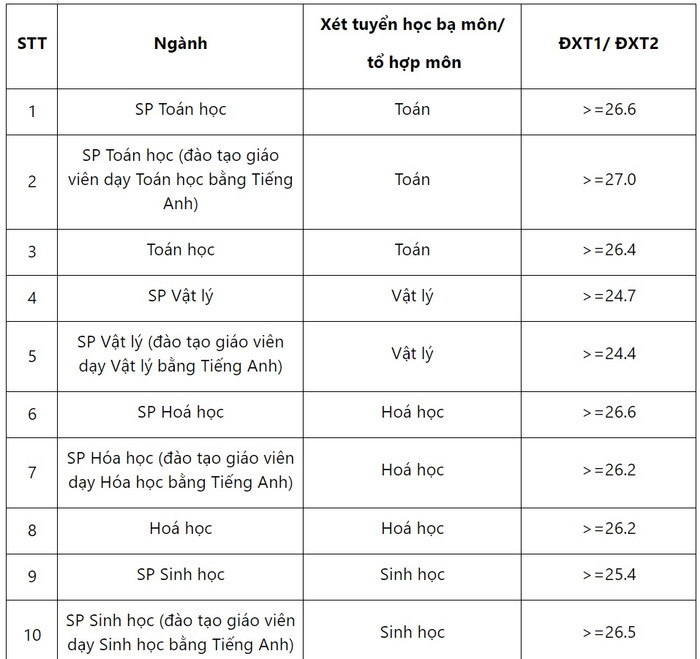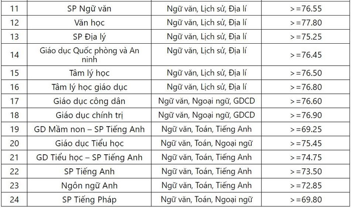 Với thí sinh thuộc đối tượng xét tuyển thẳng theo hình thức xét tuyển học bạ môn/ tổ hợp môn, điểm chuẩn cụ thể như sau: