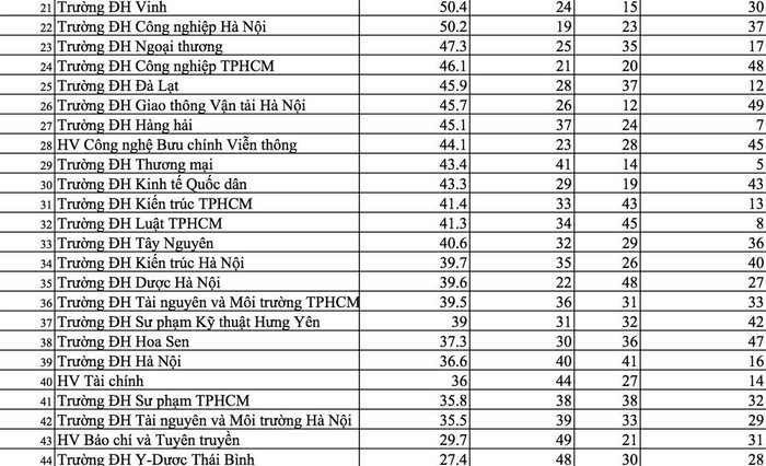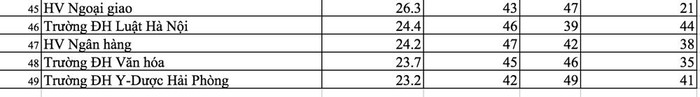 Điều đáng lưu ý, một số trường đại học nổi tiếng, thậm chí là sự lựa chọn đầu tiên của nhiều học sinh giỏi lại có xếp hạng trung bình như trường Đại học Y Hà Nội đứng thứ hạng 20, Đại học Ngoại thương đứng thứ 23, Đại học Kinh tế quốc dân đứng ở vị trí 30…