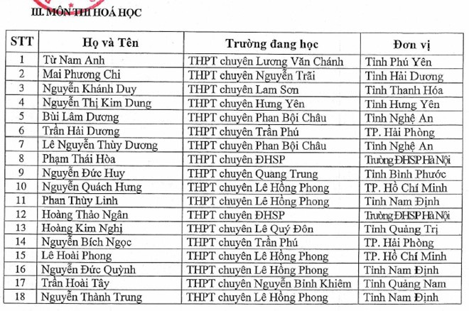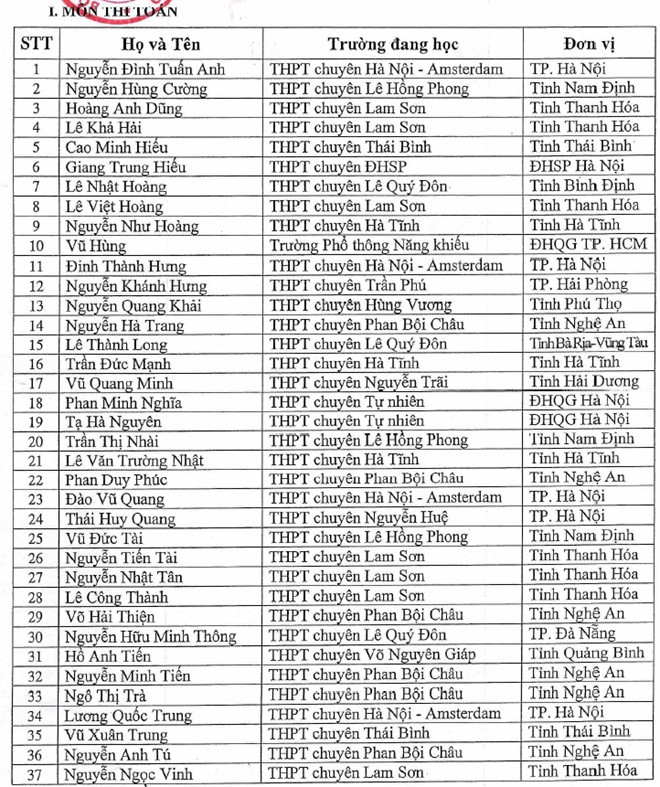 Theo danh sách của Bộ GD&ĐT, 137 học sinh tham gia kỳ thi chọn đội tuyển quốc gia dự thi Olympic quốc tế năm 2016 không phải thi THPT quốc gia vào tháng 7 tới.
