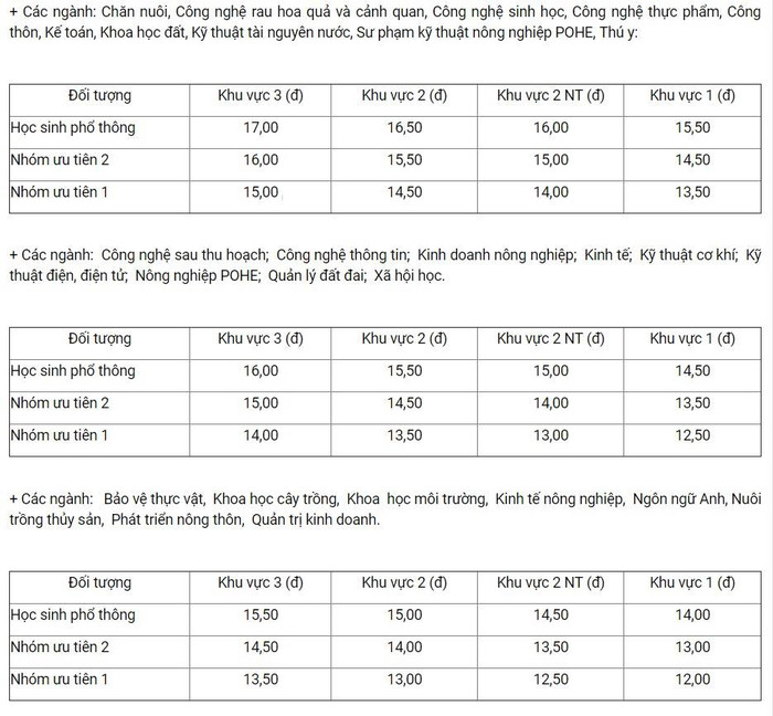 Học viện Nông nghiệp Việt Nam công bố mức điểm nhận hồ sơ đăng ký xét tuyển đại học từ 12 đến 17 cho 27 ngành khác nhau với tổng chỉ tiêu 4780.