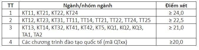 Đại học Ngoại thương: Cơ sở tại Hà Nội và Thành phố Hồ Chí Minh nhận hồ sơ khối A00 mức 22,5 điểm, các khối còn lại là 21,5 điểm.