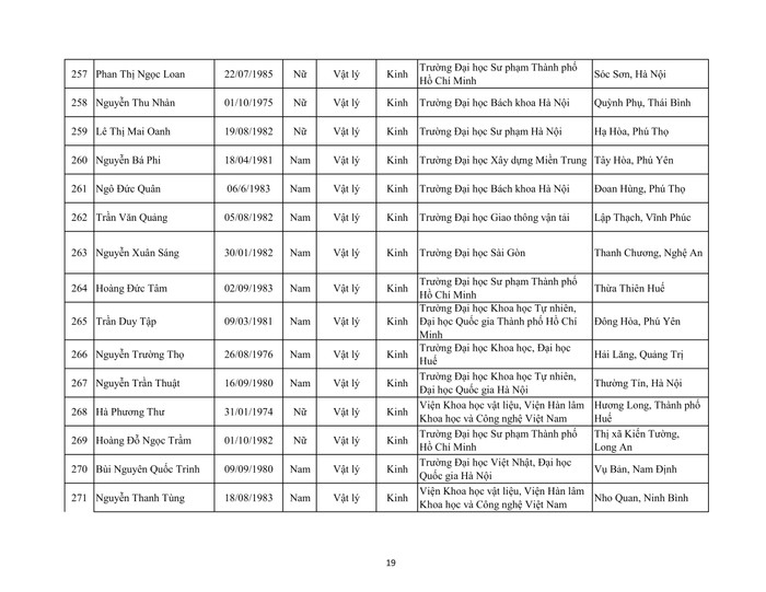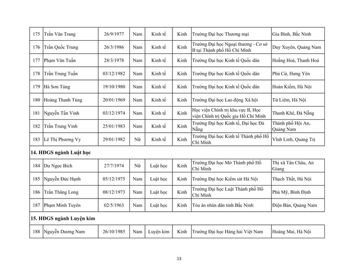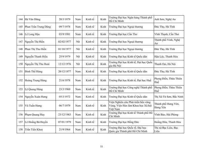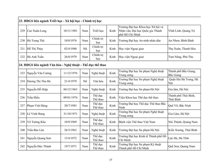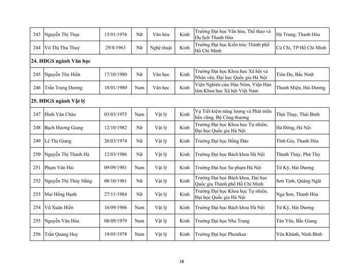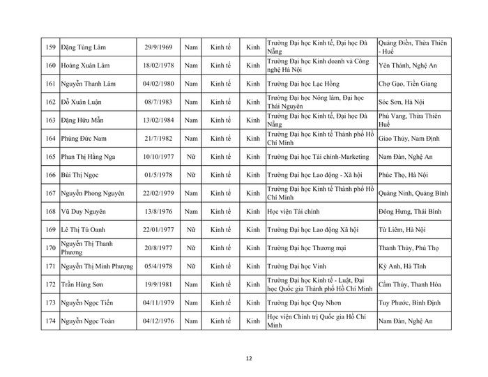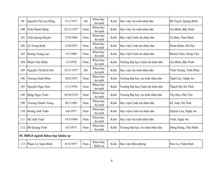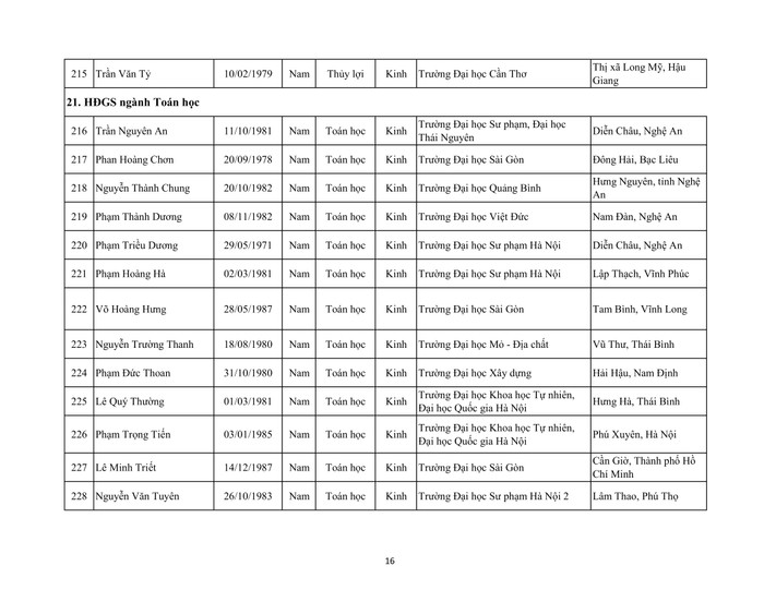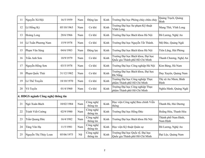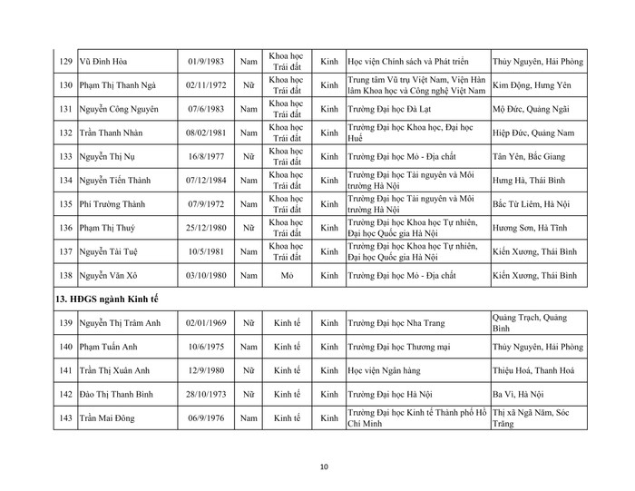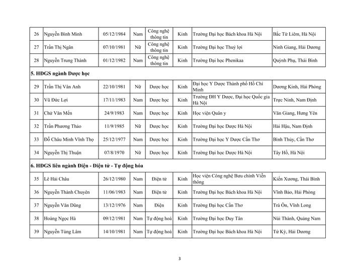 Đây là danh sách xét tại Phiên họp lần thứ VI của Hội đồng Giáo sư nhà nước nhiệm kỳ 2018-2023, ngày 05/12/2020. Danh sách cụ thể như sau: