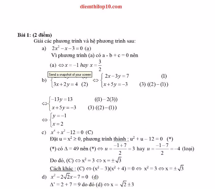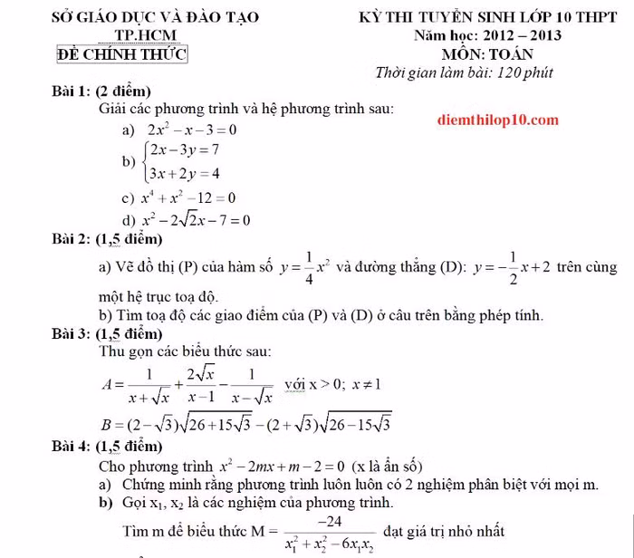 Đáp án 3 môn thi vào lớp 10 tại TPHCM năm 2012