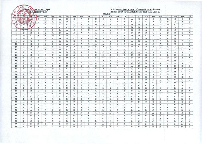 Dự kiến ngày 14/7, các tỉnh thành đồng loạt công bố điểm thi. Dưới đây là đáp án 24 mã đề thi Lịch sử: