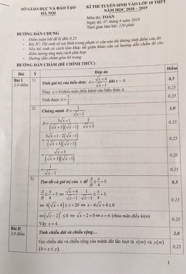 Báo Điện tử Giáo dục Việt Nam giới thiệu đến quý độc giả đáp án môn Toán thi lớp 10 Hà Nội năm 2018: