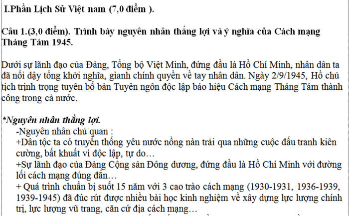 Đáp án môn Lịch sử của Giáo viên Trường Chuyên Phan Bội Châu