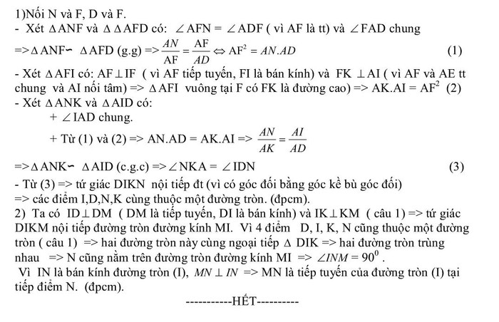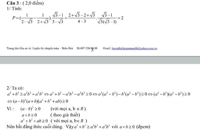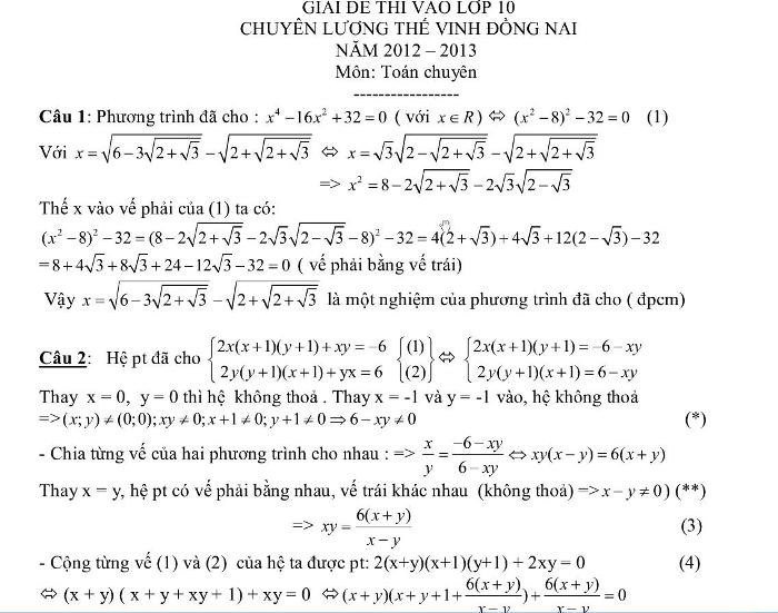 | Đáp án đề thi Toán lớp 10 chuyên Đồng Nai. |
