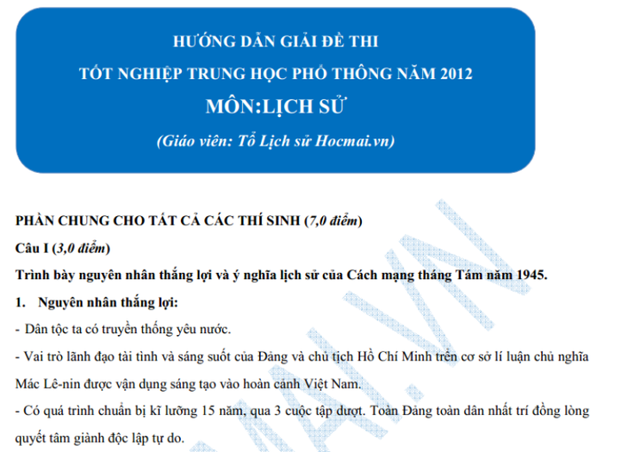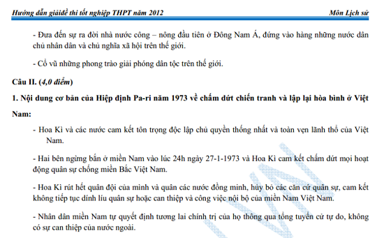 (GDVN) - Báo Giáo dục Việt Nam cập nhật nhanh nhất lời giải các môn thi tốt nghiệp THPT. Dưới đây là gợi ý lời giải môn lịch sử.