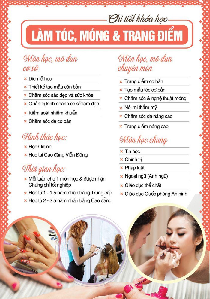 Nhà trường đã ký kết hợp tác đào tạo với những đơn vị có uy tín hàng đầu hiện nay trong lĩnh vực chăm sóc sắc đẹp nhằm mang đến cho người học những kiến thức và kỹ năng tốt nhất. Đây là những nghề dễ tìm được việc làm phù hợp với mức thu nhập tốt.
