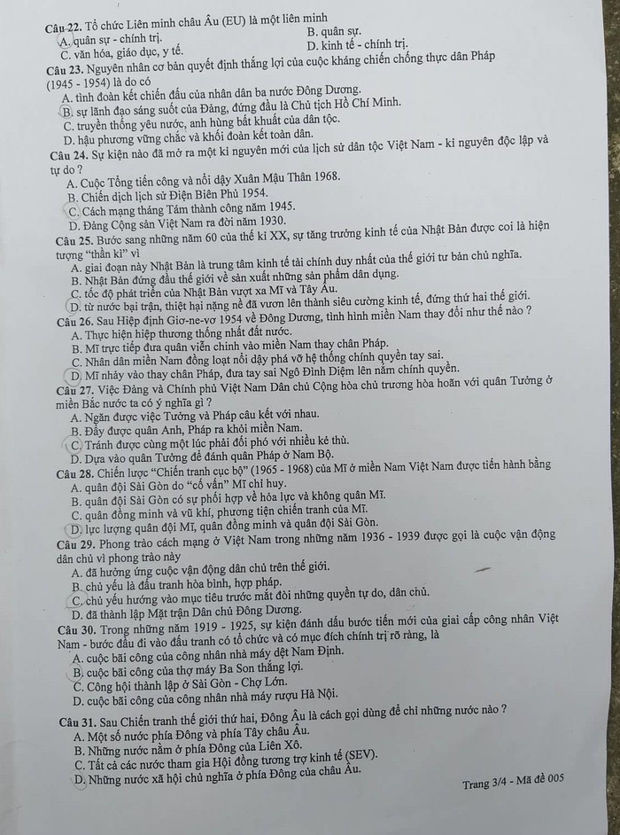 Bởi, trong quá trình ôn luyện thì lượng câu hỏi của lịch sử Thế giới chiếm tới 50% nhưng trong đều thi chính thức thì lượng kiến thức lịch sử Việt Nam lại chiếm 70%.