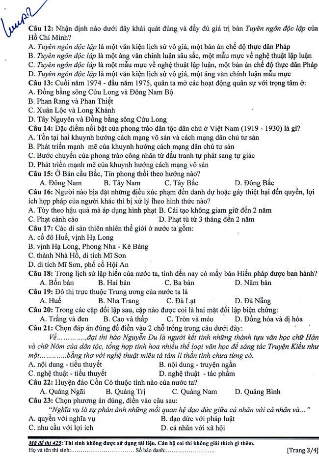 Đa số các thí sinh nhận định, đề Trắc nghiệm chung không quá khó.