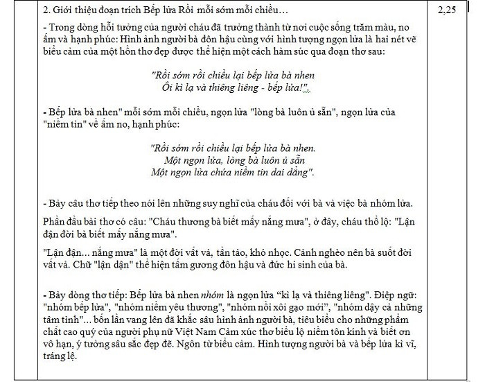 - Đề yêu cầu nêu cảm nhận về đoạn thơ liên quan đến tình cảm gia đình, tình bà cháu nhưng lại thêm phần “từ đó nhận xét...” sẽ gây khó khăn cho phần lớn thí sinh chưa quan tâm đến phân tích thơ và liên hệ.
