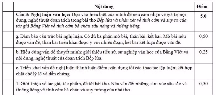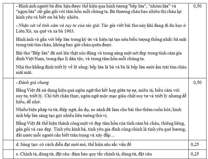 - Giám khảo cần nắm được nội dung trình bày trong bài làm của thí sinh, tránh đếm ý cho điểm. Vận dụng linh hoạt hướng dẫn chấm, sử dụng nhiều mức điểm một cách hợp lí, khuyến khích những bài viết có cảm xúc, sáng tạo.
