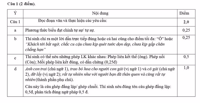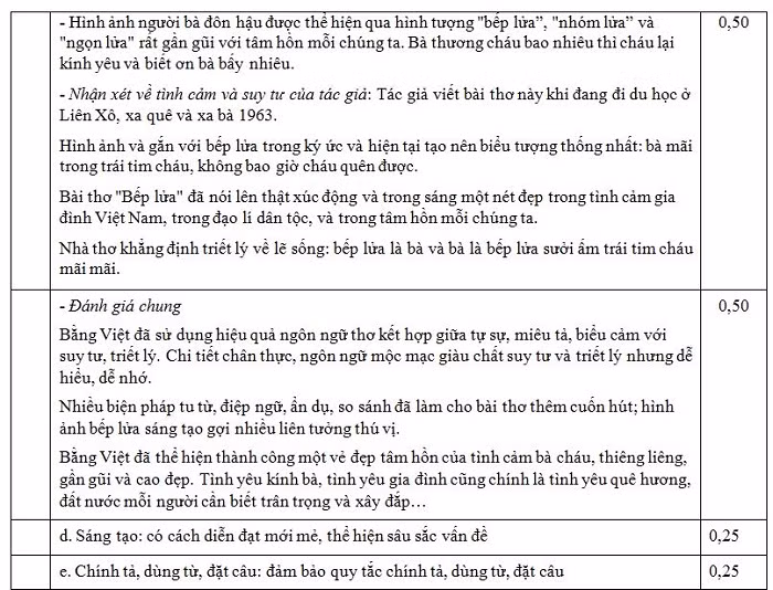 - Diễn đạt dễ hiểu, không mắc lỗi dùng từ, chính tả và ngữ pháp: 0,25 điểm