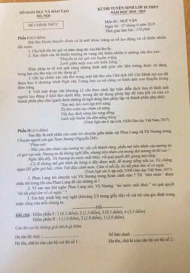 Ngay sau khi kết thúc môn thi, tổ Ngữ văn - Hệ thống giáo dục HOCMAI gợi ý hướng dẫn giải đề thi này tuyển sinh vào 10 môn Ngữ văn. Thí sinh và phụ huynh tham khảo: