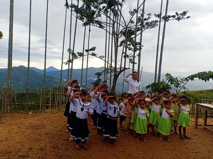 | Các em nhỏ háo hức đón lễ khai giảng tại điểm trường Tăk Pổ (Quảng Nam). Ảnh: Trà Thu. |