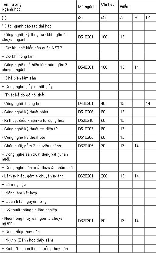 | Điểm chuẩn của Trường ĐH Nông lâm TP HCM. |