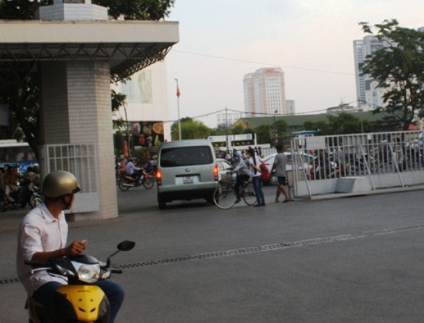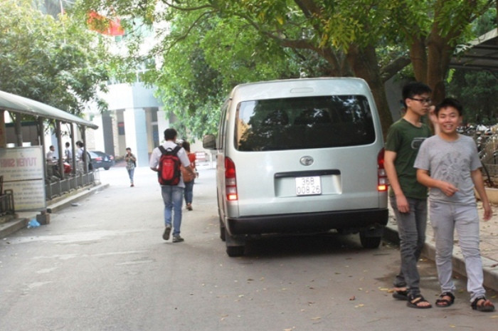| Chiếc xe ô tô nhãn hiệu Toyota 16 chỗ biển số 36B – 008.26, chiều 3/6 đang xếp khách ngay sát giảng đường B2, gần 2 bãi trông xe đạp, xe máy của trường ĐHQG Hà Nội. (ảnh Xuân Hải - Infonet) |