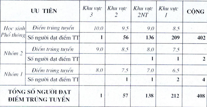| Khối | Điểm trúng tuyển NV1 | Số thí sinh trúng tuyển |