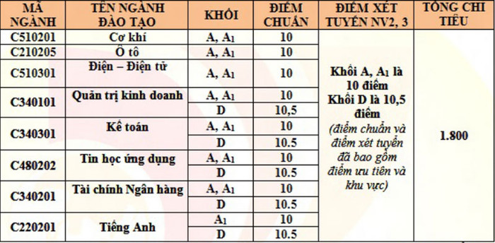 CĐ Viễn Đông công bố điểm chuẩn, NV2, NV3 như sau: