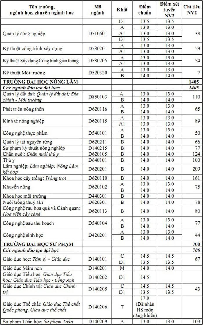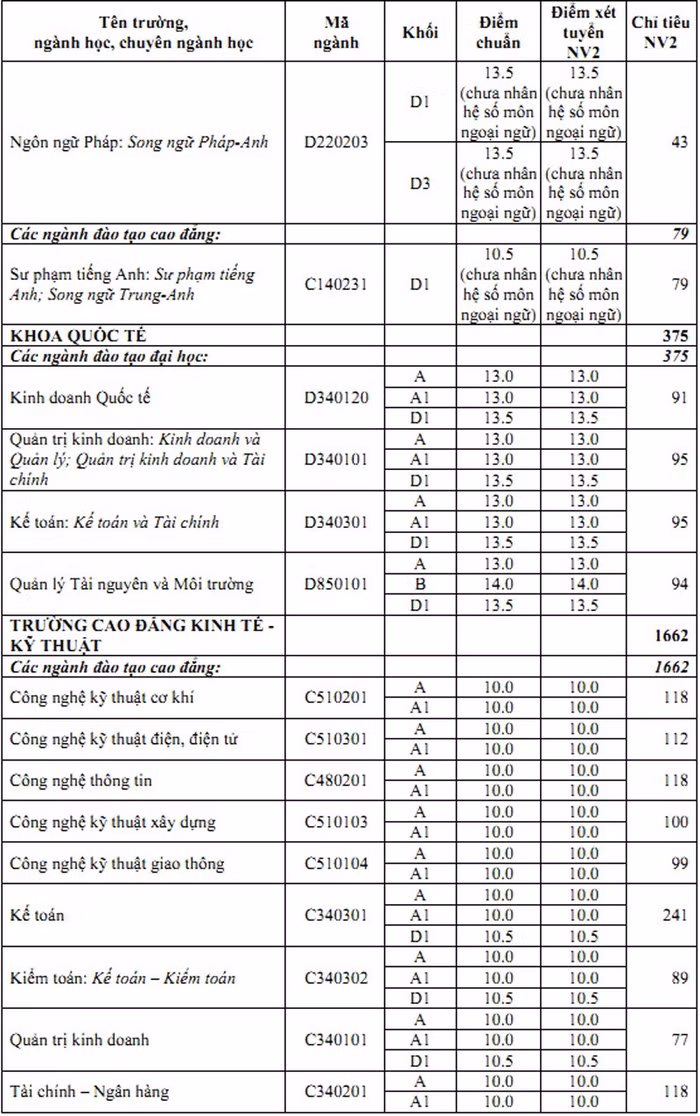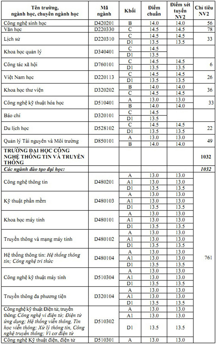 Điểm trên áp dụng với với thí sinh KV3. Mức chênh lệch điểm trúng tuyển giữa các nhóm đối tượng liền kề là 1 (một) điểm, khu vực liền kề là 0,5 (nửa) điểm.