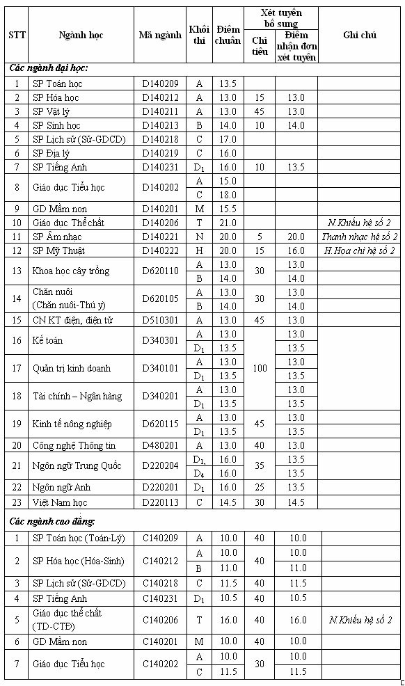 Điểm trên áp dụng với với thí sinh KV3. Mức chênh lệch điểm giữa các nhóm đối tượng liền kề là 1 (một) điểm, khu vực liền kề là 0,5 (nửa) điểm.