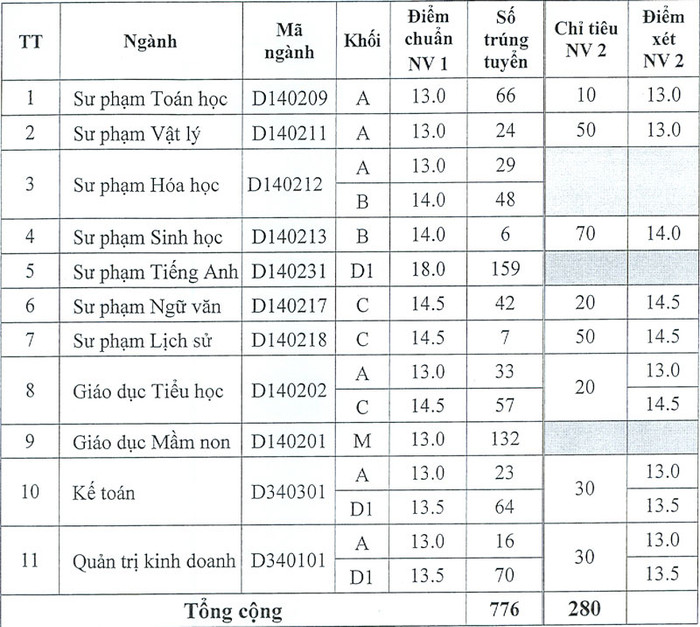 Điểm trên áp dụng với với thí sinh KV3. Mức chênh lệch điểm trúng tuyển giữa các nhóm đối tượng liền kề là 1 (một) điểm, khu vực liền kề là 0,5 (nửa) điểm.