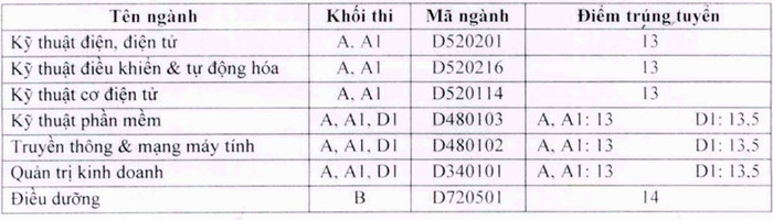 Điểm trên áp dụng với với thí sinh KV3. Mức chênh lệch điểm trúng tuyển giữa các nhóm đối tượng liền kề là 1 (một) điểm, khu vực liền kề là 0,5 (nửa) điểm.