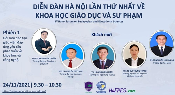 Nhằm tạo ra một môi trường học thuật để thảo luận, nghiên cứu, tham vấn các chính sách về tiếp cận và thích nghi mới trong giáo dục và sư phạm, Diễn đàn Hà Nội lần thứ nhất về Khoa học giáo dục và Sư phạm (Hafpes 2021) được Trường Đại học Giáo dục - Đại học Quốc gia Hà Nội và Viện khoa học Giáo dục Việt Nam phối hợp tổ chức.